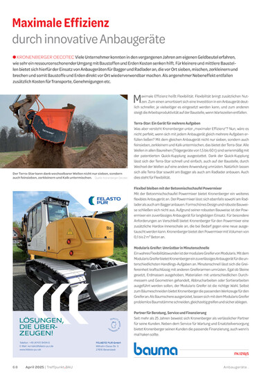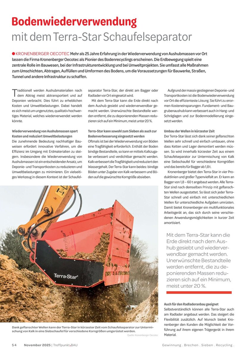 Mehr als 25 Jahre Erfahrung in der Verbesserung von bindigen Aushubmassen zwecks deren Rückverfüllung vor Ort direkt an der Baustelle lassen die Firma Kronenberger Oecitec als Pionier des Bodenrecyclings erscheinen...