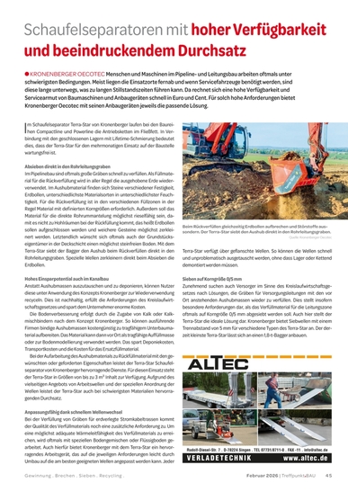 Mehr als 25 Jahre Erfahrung in der Wiederverwendung von Aushubmassen vor Ort lassen die Firma Kronenberger Oecotec als Pionier des Bodenrecyclings erscheinen...