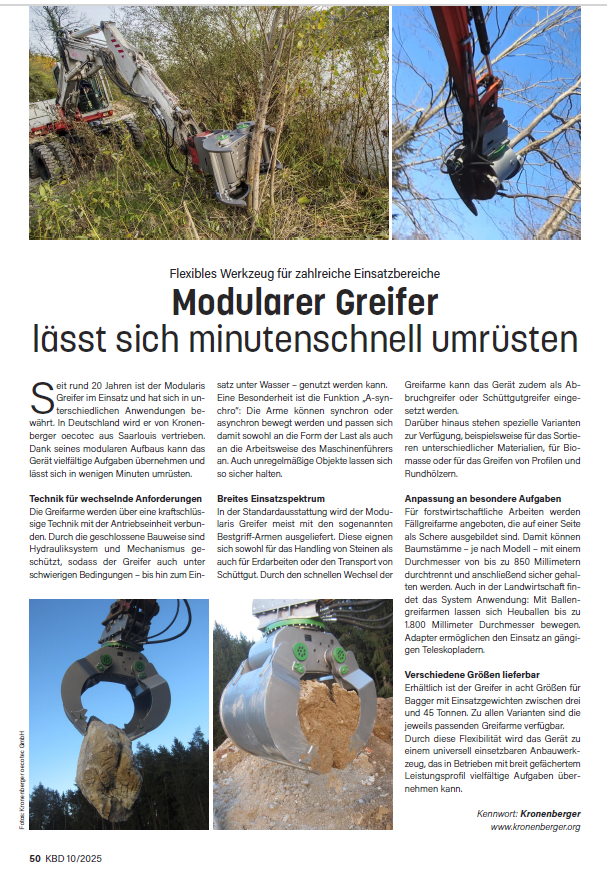 Seit rund 20 Jahren ist der Modularis Greifer im Einsatz und hat sich in unterschiedlichen Anwendungen bewährt. In Deutschland wird er von Kronenberger oecotec aus Saarlouis vertrieben...