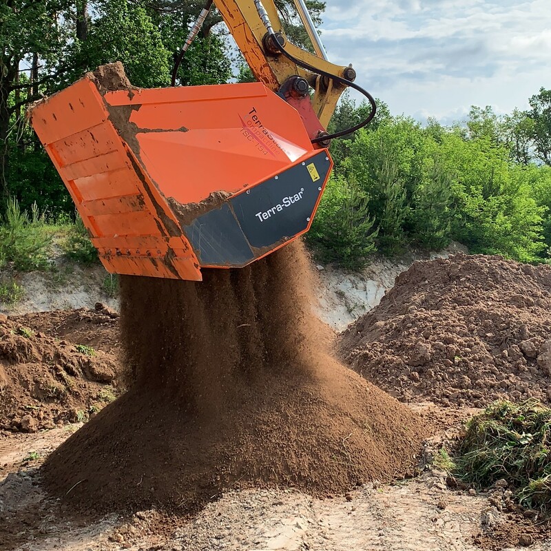 Der Schaufelseparator Terra-Star® Compactline wurde speziell für Kompaktbagger mit einem Gewicht von 10 bis 20 Tonnen und mittelgroße Radlader entwickelt. Ein herausragender Vorteil besteht darin, dass keine Leckölleitung benötigt wird, was die Handhabung und Wartung deutlich vereinfacht. Hauptsächlich findet der Terra-Star® TSC COMPACTLINE Anwendung im Garten- und Landschaftsbau, im Kompostbereich und im Erdbau. Er kann sowohl an Baggern als auch an Radladern angebracht werden. Je nach den Anforderungen des Einsatzes sind verschiedene Wellenausführungen verfügbar.