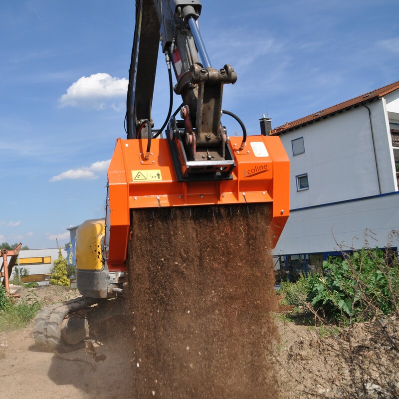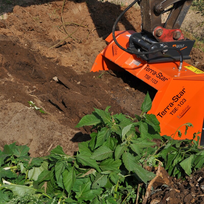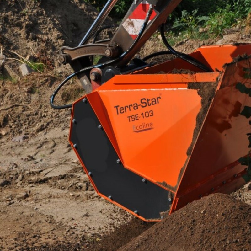 Der Terra-Star® Ecoline Schaufelseparator stellt ein robustes und vielseitiges Gerät dar, dessen geringes Eigengewicht seine Langlebigkeit nicht beeinträchtigt. Ein herausragender Vorteil besteht darin, dass keine Leckölleitung benötigt wird, was die Handhabung und Wartung deutlich vereinfacht. Primär wird der Terra-Star® TSE ECOLINE im Garten- und Landschaftsbau sowie im Kabelbau eingesetzt. In der Regel erfolgt die Montage an Baggern, aber auch eine Anbringung an Radladern ist möglich. Es stehen verschiedene Wellenausführungen zur Auswahl, die den spezifischen Anforderungen des Einsatzbereichs gerecht werden können.